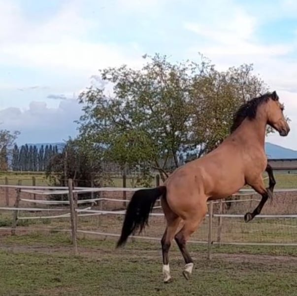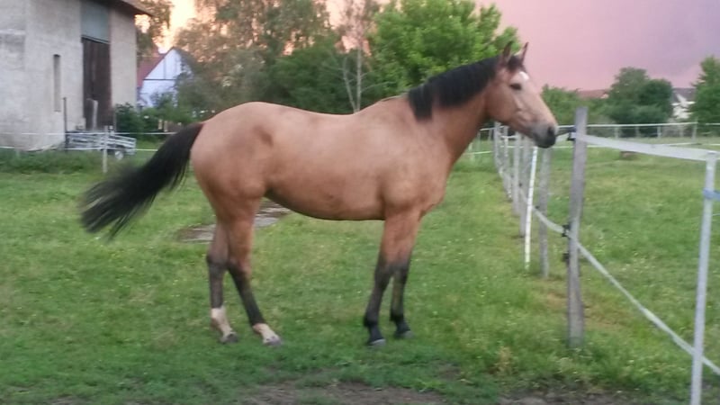 Isabelle mare, born in 2015, 1.69 m, fully registered, dam is a crème breed, sire is a show jumping horse. PSSM1 negative, suitable for leisure riding or breeding. Dominant mare within the herd with a good temperament, very easy to handle.
