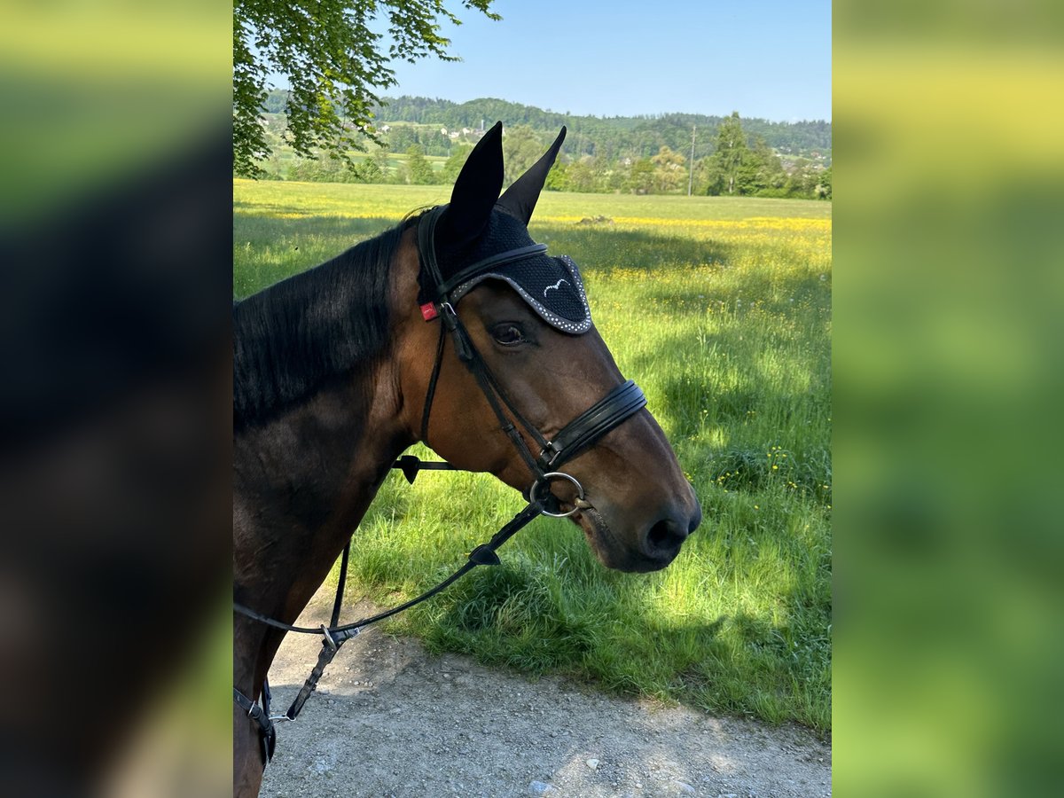 Extazy ist eine brave, ausdrucksstarke und motivierte Stute, die ihren Besitzer von ganzem Herzen liebt. Sie ist engagiert und stets bestrebt ihren Reiter glücklich zu machen. Sie ist ein ideales Amateur-/Juniorenpferd, springt einfach und gerne, ist aber auch für Dressur sehr zu begeistern. Ausreiten alleine oder in der Gruppe ist kein Problem, sie ist absolut verkehrssicher. Sie hat einen Charakter aus Gold und macht jeden Tag nur Freude. Extazy wurde regelmässig geimpft und entwurmt. Sie ist gesund, die Zähne wurden jährlich vom Tierarzt behandelt. Wir wünschen uns für Extazy einen Platz, bei welchem sie die Nummer eins sein kann. Extazy wurde regelmässig von einem Teenager geritten und gesprungen. Sie tut dies sehr pflichtbewusst. Deshalb können wir uns Extazy auch als Juniorenpferd /Lizenzpferd vorstellen. Extazy wurde bei uns bis 130 gesprungen, 120 siegreiche. Sie war mit uns im In- und Ausland auf Turnieren. Dressurmässig wurde sie von einer erfahrenen Dressurreiterin bis Niveau M ausgebildet. Da meine Tochter infolge fortgeschrittenem Studium weniger Zeit fürs Reiten hat, suchen wir für Extazy einen neuen Platz. Wir geben Extazy mit passendem Sattel weiter.