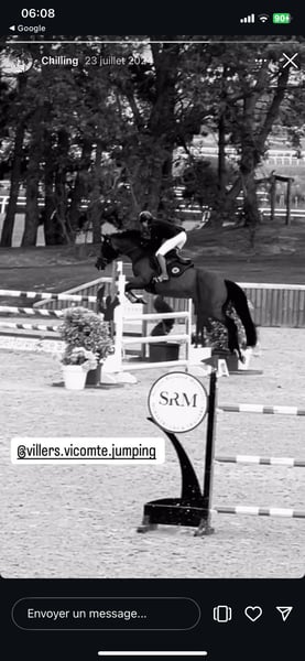 Je m’en sépare à contre cœur car depuis son arrivée je suis blessé à la cheville, je donnerai également ses affaires ( selle, protection, couvertures, couvre rein, produits, brosses seaux etc.. Chilling des Essarts 14 ans cette année (2012), selle français, bai père: DOLLAR DELA PIERRE SF section A, mère: HENSSIE DU BEL AIR SF section A PAR REVE D’ELLE SF section A 1m65 au garrot ( non ferré ) Jument qui a déjà eu deux poulains 2021 & 2022 , PACE 4fois (09/01/25) À jours : Vaccins, vermifuges, maréchal, vétérinaire, dentiste & ostéopathe. Déjà sortie en CSO amateur 1 & 2 GP, potentiel en CCE. Très franche sur les obstacles. Jument très gentille, proche de l'homme, exemplaire aux soins, agréable à monté. Jument avec du caractère mais douce. Voyage très bien van & camion. Idéal pour cavalier d’un bon galop 4/5 ou professionnel qui souhaite remettre un cheval à sa main et un cheval à finir de former.