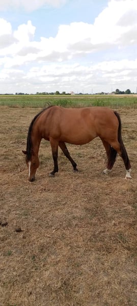 A vendre Venisia pré noir (Quite Easy x Corrado I), jument selle français de 2009 bénéficiant de 3 points pace. Actuellement pleine de Candy de Nantuel. Très bonne souche maternelle noté 8/10 , Venisia est la sœur utérine de Chartraine Pré noir iso 152 évoluant jusqu'en 160 avant d'être exportée aux Etats Unis. On retrouve également dans la souche les étalons Norman Pré noir et Quorioso Pré noir. Venisia est une jument d'1m70, porteuse et extrêmement gentille. Elle est en bonne santé et a jour des vaccins, vermifuge et maréchal. Visible près de Dunkerque 59.
