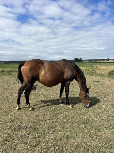 Na sprzedaż Tit'noblesse, czarny półkrwi (Canturo x Trésor de Cheux). Doskonała linia matczyna oceniona na 8/10, siostra macierzysta ogierów Norman Pré noir (iso 153) i Quorioso Pré noir (iso 167). Klacz z hodowli z 2007 roku, w ciąży na 2026, obecnie w siodle z młodym od Ermitage, kalibrowanym. Dostępna z lub bez źrebięcia. Klacz bardzo płodna, łagodna, zaszczepiona, odrobaczona, podkuwana. Widoczna w Dunkierce, 59. km. Budżet 3500 € bez źrebięcia.