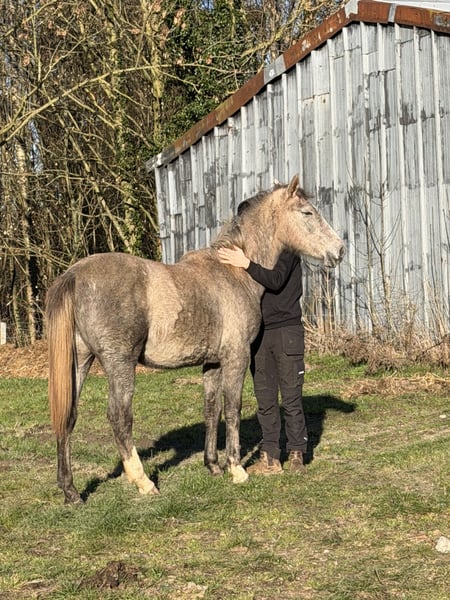 À vendre jolie pouliche de 2 ans (avril 2024) avec un pedigree très intéressant pour le saut d’obstacles. 🔹 Origines : Père : Lancôme du Hasard, fils du célèbre Garfield de Tiji des Templiers Mère : Belle van den Achterstedries Inscrite au stud-book Studbook SBS. 🔹 Informations : • Pouliche 2 ans • Taille estimée 1m65 – 1m70 • Bon modèle sport • Bonnes allures et équilibre naturel • Élevée au pré toute l’année • Manipulée, proche de l’homme et facile au quotidien Jeune cheval avec beaucoup de potentiel pour le CSO, idéale pour cavalier souhaitant former un cheval de sport ou pour valorisation. Vendue uniquement par manque de temps, afin qu’elle puisse évoluer dans un projet sportif. 📍 Visible en Belgique 💰 Prix : 12000 € (discutable pour bon projet) 📩 Photos et vidéos disponibles sur demande.