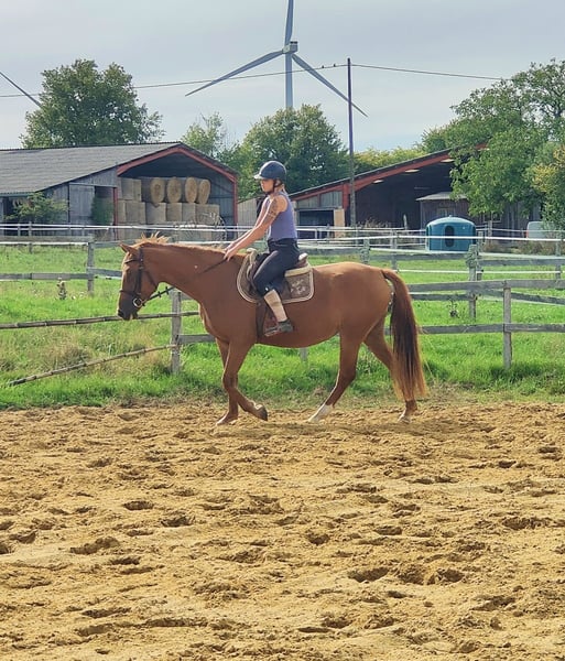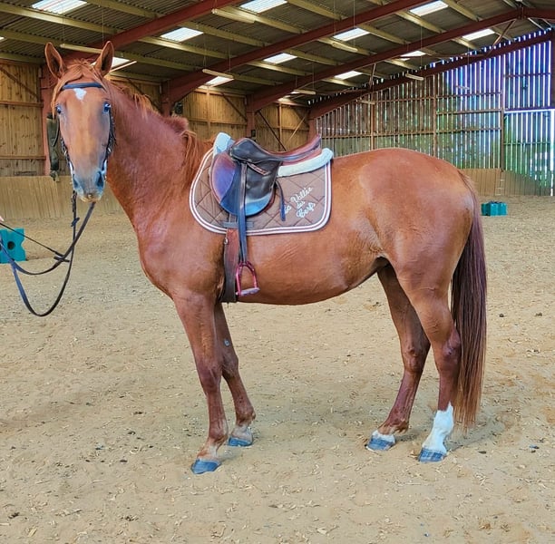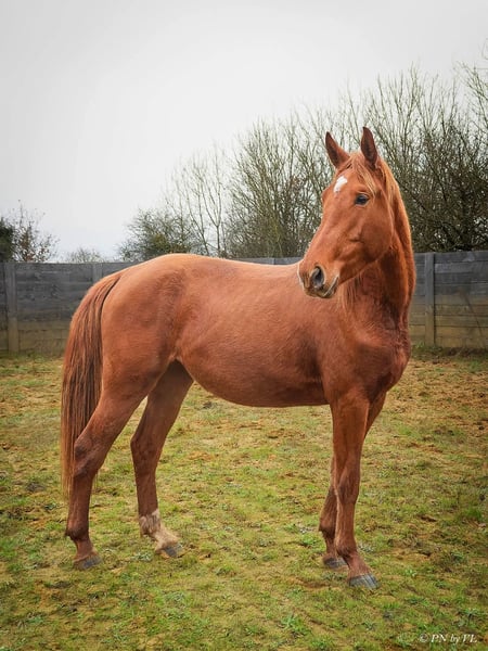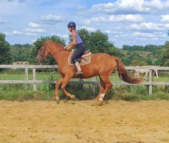 ✨ AVAILABLE ✨ ✉️ Please read the entire listing carefully before making contact (we aim to provide as much information as possible about our horses here to avoid unnecessary inquiries – thank you for your understanding). 🌸 MAIRINE DE L’ISOP 🌸 French Saddle Horse (Selle Français) Mare, chestnut, born 14/05/2022 (3 years old) 🧬 Sire: BUSH VD HEFFINCK (BEL) aka ASB CONQUISTADOR BWP – Dam: AQUARELLE D'ADRIERS SF, by CALEIDOS DC (DEU) HAN (visible on site) 📏 Height approximately 1.59 m (about 16.1 hh) ✅ Young, energetic mare, well-balanced with a lot of style and genuine potential to develop. Will require an experienced rider capable of handling young horses. Basic training / handling: halter, leading, loading into the trailer, picking up feet, remains calm at the hitching post. She is still somewhat sensitive and emotional: she needs time to understand and perform correctly, but with patience and calmness, MAIRINE will be able to showcase her beautiful qualities, which should be further developed! Perfectly suited for competitive disciplines, to be further trained into a “handy” mare. MAIRINE is backed and continues her training. 🐴 Lifestyle: Lives in a herd on pasture all year round, sociable with other horses, familiar with stable life. 🩺 Health: Up-to-date on vaccinations and deworming. Radiographic exam available upon request. 📍 Location: Luchapt (86430) – SARL LA VALLEE DES CERFS More information via message or phone (Mrs. Anne VAN AUBEL – 06 85 55 31 06 or Mrs. Célia Berthomier – 07 70 07 96 38). Serious inquiries only, please! We are looking for good families for our horses and individuals with a genuine project to find their future life companion. Price: 9 🥕🥕🥕