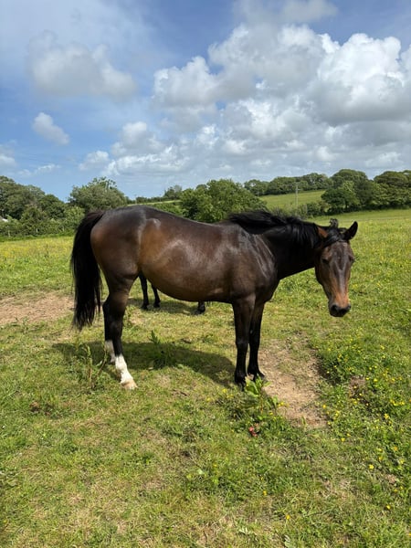 ROSEE DE L'ESPOIR x ELWOOD BLUES Loupaïs de Valette Jument SF avec belles origines. Âge : 5 ans en juin 2026 Taille : ~160 cm Robe : Bai foncé C'est une jument très gentille, très studieuse mais avec du caractère, idéale pour cavalier (cavalière) confirmé(e). Sort en extérieur seule ou accompagnée. Monte en van. Vit en extérieur comme en box. A jour, dentiste, vermifuge, vaccins. Ok maréchal. A finir de former pour performer, gros potentiel en CSO. Son père est actuellement sous la selle de Laurent GOFFINET. Sa mère a participé au championnat de France à Lamotte sous ma selle uniquement. Actuellement, elle est montée par un cavalier pro. Bilan radios OK. Plus d'infos et vidéos sur demande. N'étant pas pressée, elle ne partira que dans une maison 5* donc pas sérieux s'abstenir. Visible à Gréville-Hague (Manche 50)