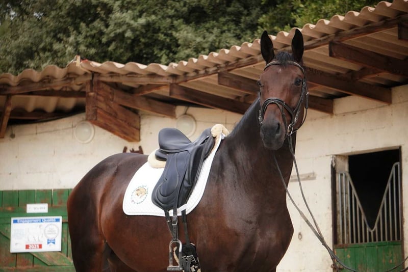 Z przyjemnością przedstawiamy wspaniałą klacz Selle Français w wieku 5 lat, pochodzącą od Van Gogh du Val (z Fürst Romancier) i matki po Pik Noir. Ten wysokiej jakości rodowód łączy siłę i elegancję ojca z regularnością i znanym charakterem linii matczynej, oferując tym samym interesujący potencjał zarówno na przyszłość sportową, jak i hodowlaną. Pochodzenie: Ojciec: Van Gogh du Val (z Fürst Romancier) – nowoczesny i wydajny ogier, ceniony za swoją moc, elastyczność i wspaniałe chody. Przekazuje swoim potomkom ekspresyjną lokomocję i prawdziwy potencjał do wysokiego poziomu ujeżdżenia. Ojciec matki: Pik Noir – potomek linii uznawanej za wysoką jakość charakteru, solidność i regularność, który również wnosi siłę i niezawodność. Cechy: Ta klacz prezentuje harmonijną i elegancką sylwetkę, z elastyczną i rytmiczną lokomocją, która od razu przyciąga uwagę. Jej stęp charakteryzuje się naturalnym pięknym ruchem i doskonałą elastycznością, co zapewnia przyjemność z jazdy. Łatwa do eksponowania, dobrze porusza się, jest reaktywna i zawsze z przodu nogi, co sprawia, że praca z nią jest przyjemna i rozwijająca. Jest to bardzo łagodna klacz, łatwa w pielęgnacji i codziennym użytkowaniu, która jest blisko człowieka i ma zrównoważony temperament. Już miała źrebaka, co czyni ją również interesującą klaczą do przyszłych projektów hodowlanych. Potencjał i przyszłość: Dzięki swojemu pochodzeniu, pozytywnemu nastawieniu i wysokiej jakości lokomocji, ta klacz ma wszystkie atuty, aby spokojnie rozwijać się do poziomu Amateur 1 i wyżej, pozostając jednocześnie bezpiecznym i przyjemnym wierzchowcem dla jeźdźca, który pragnie się rozwijać. Reprezentuje prawdziwą okazję dla wymagającego amatora lub jeźdźca, który pragnie połączyć przyjemność, bezpieczeństwo i potencjał sportowy, zapewniając jednocześnie konia o zdrowym umyśle i łatwego w codziennym zarządzaniu.