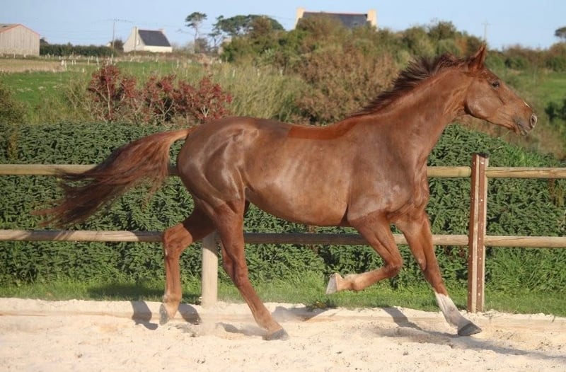 Jument de 5 ans - 1m67 - Par Farzack de l'Abbaye Jument de 5 ans, fraîchement débourrée, montrant déjà un excellent comportement.Première sortie à l'extérieur réalisée récemment : exemplaire du début à la fin, très sereine, n'a rien regardé. 1m67, jument porteuse avec du cadre et une belle locomotion.Issue de Farzack de l'Abbaye, étalon performant actuellement sur les épreuves 1m55 en Italie. Avec la qualité et du potentiel, idéal pour un(e) cavalier(e) souhaitant l'ancien et évoluer vers les épreuves Amateur Élite. ➡️ Convient à partir d'un niveau Galop 6/7 encadré. ✔️ Visite et radio ok et récente