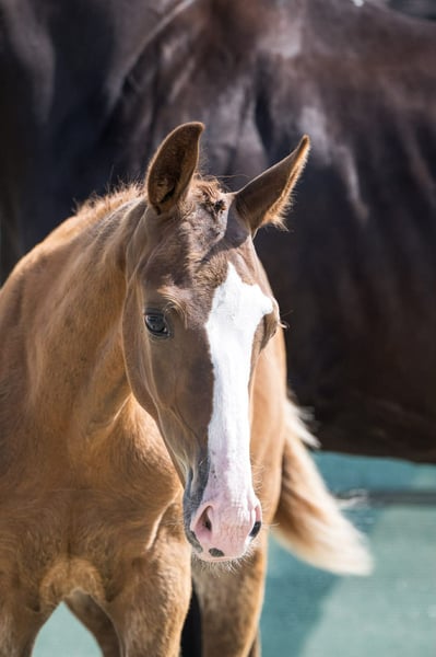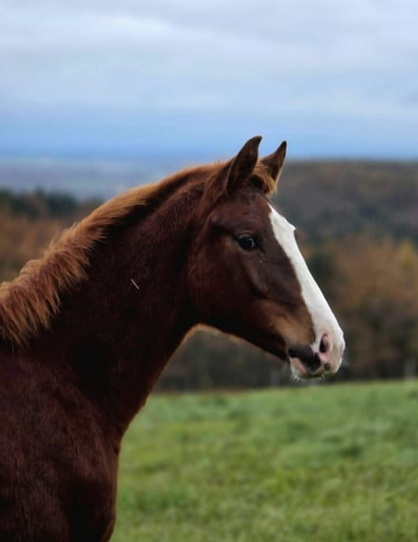 Fohlen m/w, alzanfarben, geboren am 19. April 2025, mit viel Weiß und einer natürlichen Ausstrahlung, die sofort alle Blicke auf sich zieht. Mit seinem modernen Typ, ausgeprägt im Reiten, einer sehr schönen natürlichen Balance und einer bereits beeindruckenden Bewegungsqualität für sein Alter lässt er auf ein großrahmiges Pferd (> 1,70 m) mit Substanz und echter Athleten-Aura schließen. Dieses junge Pferd vereint alle Attribute eines vielversprechenden Dressurfohlen: Eleganz, Kraft, Bewegungsumfang und ein unbestreitbares sportliches Potential. Er hat sich in diesem Jahr beim France Dressage Wettbewerb hervorgetan, den er mit fast 83 % souverän gewonnen hat. Ausgezeichnete Bewertungen sprechen für sich: Trab: 8,4 Galopp: 8,6 Schritt: 8,8 Diese Noten spiegeln seine Qualität, seine Feinfühligkeit und seine Konstanz in den drei Grundgangarten wider. Ein bemerkenswertes Wesen Im Alltag ist er: - sehr menschenbezogen, - temperamentvoll, aber ausgeglichen, - neugierig, intelligent und ausgeglichen, - liebt es, gepflegt zu werden. Aus einer familiären Zucht stammend, ist er gut im Umgang und wurde seit seiner Geburt regelmäßig: - mit hochwertigem Futter (St Hippolyt), - mit regelmäßigen Pflege- und Behandlungseinheiten, - in einer gesunden, sicheren Umgebung aufgezogen. Ein ideales Umfeld für den Aufbau einer soliden mentalen Basis und eine harmonische Entwicklung. Herkunft mit erstklassigem Dressurblut Dieser Fohlen vereint einige der begehrtesten Blutlinien Europas, sowohl väterlicher- als auch mütterlicherseits, mit zahlreichen Grand-Prix-Pferden in seinem Stammbaum. Vater: Danciano de Malleret Einer der besten Söhne von Dancier. Hannoveraner Hengst, prämiert, Top-Preis, Sieger im 30-Tage-Test, Vize-Hannover-Champion in Verden im Alter von 4 Jahren, qualifiziert für den Bundeschampionat, heute Dressur-Großpferd, regelmäßig im CDI am Start, ausgewählt für das spanische Team beim CDIO5 in Compiègne*. Ein Hengst, der für seine Eleganz, Bewegungsumfang, Ausdruckskraft und sein engagiertes Wesen bekannt ist. Mutter: Lady Gaga, KWPN Elite Stute Ehemalige Sportstute, erfolgreich im Sattel der internationalen Reiterin Margo Timmermans, für den hohen Turniersport vorgesehen, bevor sie durch eine Verletzung pausieren musste. (Videos auf Anfrage erhältlich: Piaffe, enge Wechsel, Versammlung…) Sie vereint eine außergewöhnliche Genetik: Fürstenball als Vater → Eleganz, Mechanik, Leichtigkeit im Versammeln Jazz als Großvater mütterlicherseits → Reaktionsschnelligkeit, Energie, Talent für die Dressur Scandic im Stammbaum → Widerstandskraft, Kraft, sportliche Langlebigkeit Ein außergewöhnliches Pedigree, das auf die Zucht von Grand-Prix-tauglichen Pferden ausgelegt ist. Ein Fohlen für den modernen Dressursport geboren Mit: - natürlicher, elastischer und weit ausgreifender Bewegung, - frühem Gleichgewicht, - offenem, verbundenem Geist, - genetischer Ausstattung für den Spitzensport, - harmonischem und gepflegtem Wachstum, Er erfüllt alle Kriterien eines zukünftigen Dressurpferdes für den Leistungssport, mit hohem Mehrwert für Investoren, ambitionierte Amateurreiter oder professionelle Fahrer. Warum ihn wählen? - Herausragende Qualität schon im jungen Alter - Moderner, eleganter und kraftvoller Typ - Großes Potential für den Grand Prix durch seine Blutlinien - Erfolgreich bei France Dressage (≈ 83 %) - Vielversprechendes Wesen: menschenbezogen, stabil, engagiert - Sehr gut im Umgang – gesunde und seriöse Aufzucht - Bereits jetzt beeindruckende Bewegungen - Großrahmiges, elegantes und ansprechendes Exterieur - Mehrwertsteuer rückerstattbar