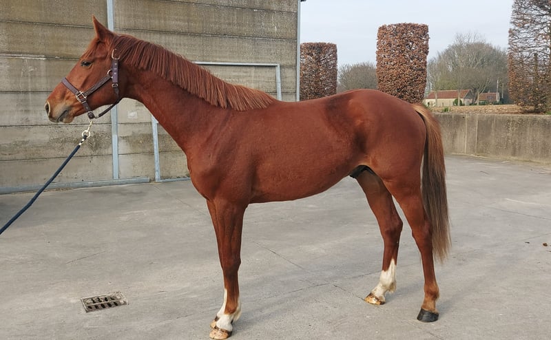 Mooi type. Zeer braaf en vriendelijk karakter. Leergierig. Geen gebreken. Uitstekende gezondheid. Groot 1m72 Zeer goede bewegingen, extra galop met veel evenwicht. Uitstekend springen in vrijheid. met vermogen, techniek, veel lef en een groot hart. RX 4* Straalbeen klasse 1