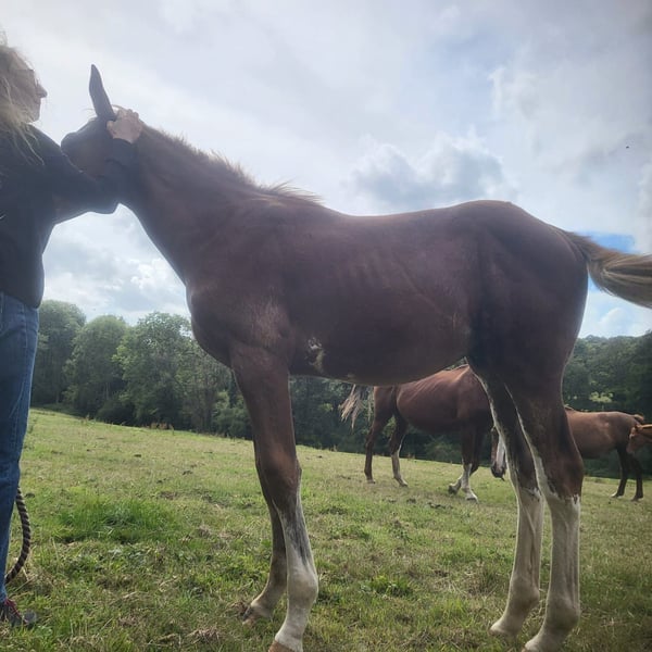 Top pedigree pour ce très beau foal : Père : Kilimandjaro Semilly (Acton Breaker x Baloubet du Rouet) Mère : Vidaline ISO 130 (Quartz du Chanu (L'Arc de Triomphe x Papillon Rouge) x Chenu du Plessis) Penjab d'Herloïne se distingue par son modèle harmonieux, de belles allures et du chic avec ses grandes chaussettes, une belle liste et une tache originale sur le ventre Il est d'un caractère curieux. Il est manipulé depuis la naissance et habitué aux soins courants. ➡️ Foal visible dans le Calvados ➡️ Partira sevré, pucé, vacciné et avec papiers 📌 Convient pour le sport (solides origines CSO) 💶 Prix : 7 000 € ( pas de TVA) 📞 Plus d’informations et photos/vidéos sur demande