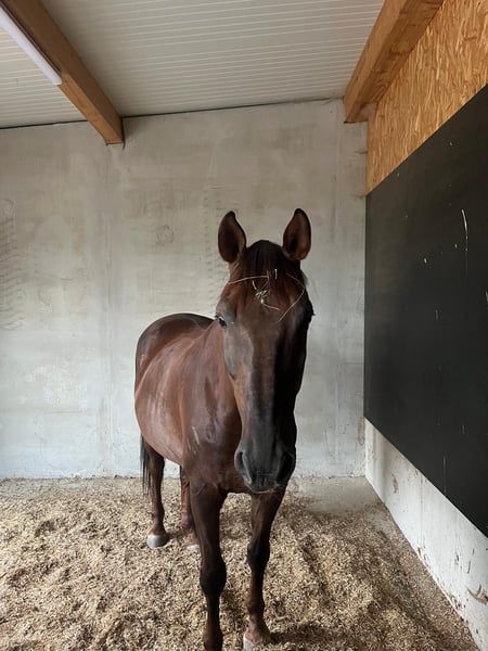With a heavy heart, we have decided to sell our gelding Merlin. Merlin is a 16-year-old Selle Francais with a height of 1.70 m. He has been regularly dewormed and vaccinated, is well-behaved for the farrier and loading, and his teeth have also been checked regularly. Merlin is not shod. Due to his arthritis, he has limited capacity for work and is being sold exclusively as a leisure horse. Merlin is not a beginner's horse due to his dominant behavior. He is well-behaved in handling and while riding, but he does like to test boundaries. Merlin goes out alone as well as in a group. He is familiar with lunging, double lunging, and groundwork. Merlin is trained up to L-level. We hope that he will go to the best hands where he will receive the attention he deserves and can stay until the end of his life. He would be the ideal partner for leisure riders who simply want to take a ride into the countryside. As we have experienced that trial rides are often taken advantage of, we charge a fee of €30 for trial rides. Therefore, please only inquire if you are seriously interested.