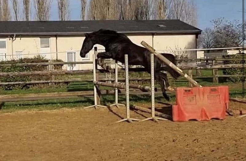 ✨Super hongre noir de 5 ans – Futur cheval d’amateur✨ 🖤 C'est un adorable hongre noir de 5 ans, avec de très bonnes origines CSO : 🔹 Invictus d’Elphen (Diamant de Semilly x Arnac d’Elphen) 🔹 Noisette Deux (Nashville SF x Noël des Étangs – New Forest) Très bonne génétique avec des frères et sœurs indicés, dont Abysse d’Elphen IPO 138. 📏 Toisera environ 1m57. Travail : ✔ Débourré aux 3 allures ✔ Longe à la voix ✔ Enchaîne un petit parcours ✔ Montre du respect et des moyens à l’obstacle ➡️ Cheval encore vert dans le travail, qui va continuer d’évoluer. Caractère : ✨ Mental en or +++ ✨ Très gentil et proche de l’homme ✨ Facile à manipuler Vie au quotidien : ✔ Tonte OK ✔ Camion / van OK ✔ Vie box + paddock l’après-midi ✔ Pâture l’été ✔ Sociable avec hongres, juments et étalons Santé : ✔ À jour vaccins, vermifuges et suivi 🌟 Un super cheval pour amateur souhaitant se faire plaisir, avec du potentiel à l’obstacle, mais aussi un cheval polyvalent ou de famille. 📍 Visible à 1h au nord de Paris 📹 Vidéos et infos sur demande