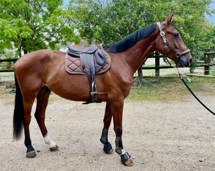 Cavallo bai, gelding, 4 anni, documenti SF, da sangue di Casall x madre da Calvaro, altezza circa 1,67 m, adatto per il tempo libero o per salto ostacoli / CCE / dilettanti. Movimenti eleganti, fluidi e leggiadri, molto regolare e cadenzato, buone capacità di salto. Impegnato questa inverno, lavorato a mano, con longes, longeline, basi solide in dressage, ha saltato alcune volte montato, percorso un piccolo tracciato, si muove in campagna da solo o in gruppo, con redini semplici, senza forzature, facile e pratico, accessibile anche a un adolescente. Gentile con le cure, conosce il trimmer, si lascia caricare nel furgone senza problemi. Aggiornato con visite veterinarie, dentista, vaccinazioni TG + R, osteopata, ferratura. Visite veterinarie disponibili con radiografie datate da oltre un mese; presenza di lieve OCD al stinco posteriore destro, operabile senza incidere sulla prognosi sportiva (preventivo su richiesta). Visibile in Lorena, tra Metz e Nancy. Foto e video su richiesta. Per maggiori informazioni: MP o 06.60.35.89.20.