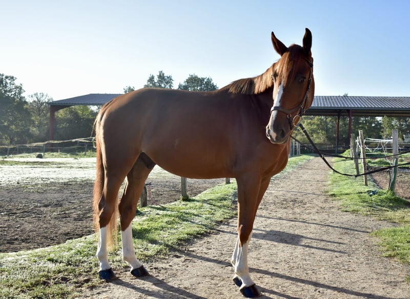 5-letni wałach, 1m70 Untouchable x Kannan Jego matka skakała 145. Bardzo dobra linia matczyna, wiele koni startujących na poziomie od 1m35 do 1m60. Do dokończenia szkolenia, w pracy od 2 miesięcy. Badanie weterynaryjne w porządku z zdjęciami rentgenowskimi.