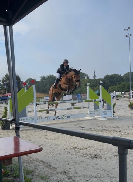 On behalf of a lovely, large-framed 7-year-old gelding for sale. He was first backed at age 6. He shows talent over fences. He has successfully completed his first vaulting exercises, which makes us believe he would be well-suited for vaulting sport. Calm and reliable in the field. He is barefoot, regularly vaccinated and dewormed, and suitable for riding out. TÜV and recent X-rays are available. If everything fits, a swap for a nice amateur-level show jumping horse at A-level could be considered.