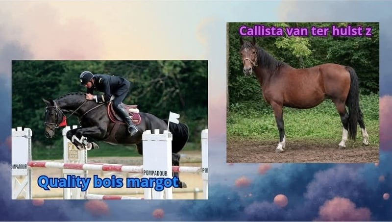 Poulain pour mai 2026 ♂️ Père : Quality Bois Margot ( l'arc de triomphe x quidam de revel) ICC 145 Qualification finale cycle classique jeunes chevaux à 4 ans ELITE, 5 ans ELITE, 6 ans DRESSAGE : IDR 108 Qualification finale cycle classique jeunes chevaux à 5 ans HUNTER : Qualification finale jeunes chevaux : 1ère année à 4 ans ELITE Étalon reconnu pour transmettre respect, puissance, équilibre et mental, avec une production appréciée aussi bien pour le saut d’obstacles qu'en concours complet . ♀️ Mère : Callista van ter Hulst Z ( calvaro x heartbreaker) Jument à l’origine solide, issue d’une lignée performante orientée sport, elle a une fille indicé qui a tournée sur 145 avec résultats. 🍀Facilité de paiement jusqu'au sevrage
