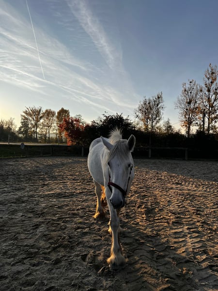 Te koop: indrukwekkende Shire Horse merrie – perfect voor recreatie en plezier Te koop staat een prachtige, elegante Shire Horse merrie, geboren in 2015. Deze imposante grijze dame valt op door haar statige lengte en rustige karakter. Met een stokmaat van 180 cm is ze een echte blikvanger en uitstekend geschikt voor iedereen die op zoek is naar een betrouwbaar en indrukwekkend recreatiepaard. Ze is vriendelijk in de omgang, goed getraind en houdt van lange buitenritten en wandelingen in de natuur. Haar rustige aard maakt haar ook voor minder ervaren ruiters tot een aangename metgezel. Bij interesse of voor meer informatie sta ik graag tot uw beschikking. Bezichtiging is mogelijk op afspraak.