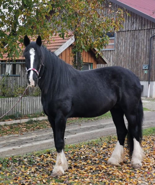 Loving Shire Horse Mare – Ideal for Leisure and Pleasure For sale is a stunning and elegant Shire Horse mare, born in 2015. Standing at an impressive 17.6 hands and with her shiny black coat, she is a real eye-catcher. This calm and friendly mare is perfect for recreational riding and impresses with her gentle nature and composure. She is well-trained, reliable in handling, and suitable for both experienced riders and beginners looking for a special horse. The mare is healthy, regularly vaccinated, and enjoys cuddling in her free time. If you are interested or require further information, please feel free to contact me. A personal meeting is always possible.