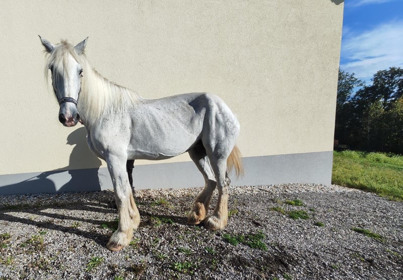 ✨ Elegancka klacz rasy Shire ✨ Na sprzedaż oferujemy naszą klacz Shire Maja, urodzoną w 2014 roku. Ta imponująca siwa klacz wyróżnia się imponującym wzrostem 1,87 m. Ma spokojne, opanowane usposobienie i doskonale nadaje się do użytku rekreacyjnego, jako koń towarzyszący, do tulenia, spacerów lub po prostu na wspólne, miłe chwile. Jest przyjazna w kontakcie, dobrze ułożona i cieszy się kontaktami z ludźmi. Podczas czyszczenia kopyt jest spokojna, zna załadunek do przyczepy, a wizyty u weterynarza również nie stanowią dla niej problemu. W stadzie zajmuje miejsce w średnim do wysokiego rzędu, szczególnie gdy chodzi o dostęp do paszy. A gdy podawane są koncentraty, łatwo jest, dzięki jej wzrostowi, przesunąć na bok inne konie. Ze względu na jej wiek szukamy dla niej miejsca, w którym będzie mogła zaznać spokoju i cieszyć się życiem w troskliwej, pełnej miłości okolicy. Ma kifoze grzbietową, dlatego u nas nigdy na niej nie jeździliśmy i jest „dzika”. Dlatego sprzedajemy ją z certyfikatem ochrony i w wyjątkowo korzystnej cenie 900 € zamiast 5900 €. Dla nas najważniejsze jest, aby trafiła w odpowiedzialne ręce, w których będzie doceniana i odpowiednio zaopiekowana. Chętnie możesz również wypełnić i wysłać formularz kontaktowy na naszej stronie internetowej: 👉 thundering-hooves-shire1.webnode.at