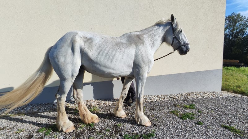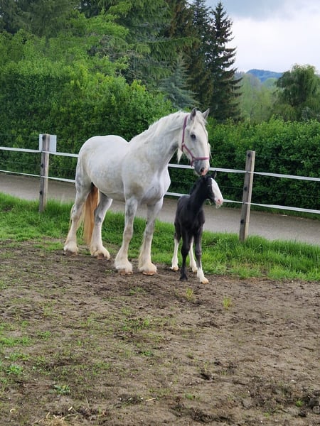 ✨ Elegant Shire Mare – Perfect for Leisure Riding ✨ For sale is a beautiful Shire Horse mare, born in 2014. This impressive grey mare stands at an imposing height of 1.87 m and has a majestic presence. She impresses with her gentle, calm nature and is ideally suited for leisure riding — whether for relaxed hacks, walks, or simply enjoying quality time in the countryside. She is friendly, well-mannered, and enjoys human contact. Due to her age, we are now looking for a caring home where she can find peace and enjoy her life in a loving environment. She is being offered with a protection certificate and at a special price of €900 instead of €5,900. It is important to us that she goes to responsible owners who will appreciate and care for her. This exceptional mare is a true heart horse — perfect for those seeking a large, gentle Shire and looking for a reliable, honest leisure partner.