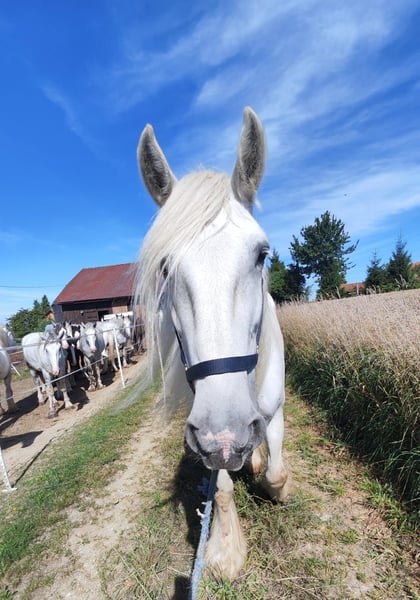 Sprzedam urokliwą klacz rasy Shire Horse – idealną dla miłośników rekreacji! Ta elegancka, siwa klacz urodzona w 2010 roku zachwyca imponującym wzrostem i przyjaznym usposobieniem. Z wysokością w kłębie 176 cm jest prawdziwą ozdobą i doskonale sprawdzi się dla osób poszukujących niezawodnego i spokojnego konia na rekreację. Jest dobrze wytrenowana, opanowana w obsłudze i chętnie wybiera się na długie wycieczki w naturze. Jej łagodne usposobienie czyni ją idealnym towarzyszem dla jeźdźców na każdym poziomie zaawansowania. W razie zainteresowania z przyjemnością nawiążemy kontakt!