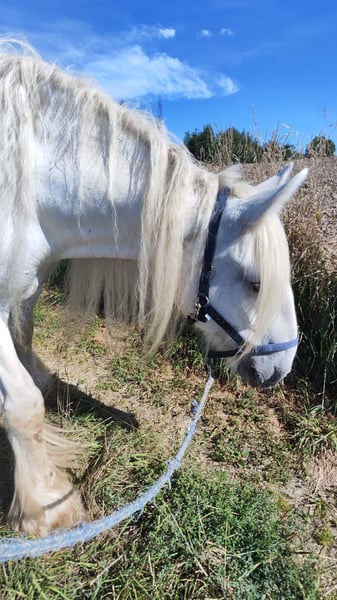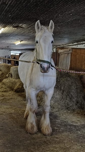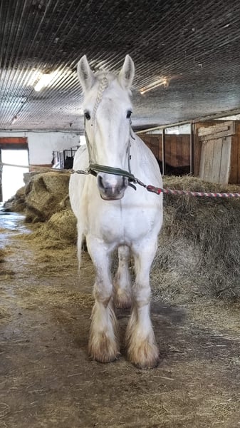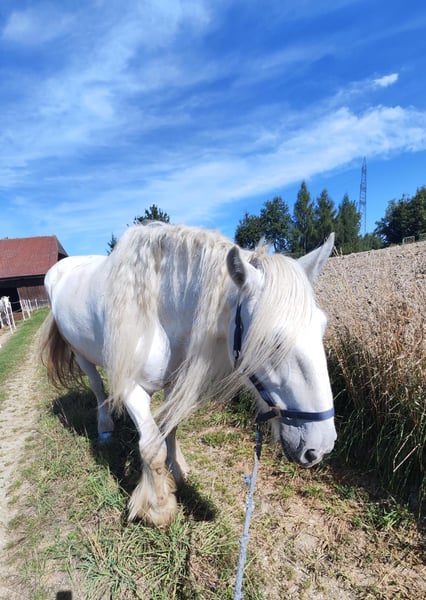Enchanting Shire Mare for Sale – Perfect for Leisure Riders! This elegant grey mare was born in 2010 and impresses with her impressive size and friendly nature. Standing at 17.6 hands, she is a true eye-catcher and ideal for those seeking a reliable and calm horse for leisure riding. She is well-trained, easy to handle, and enjoys extensive trail rides in nature. Her gentle temperament makes her an ideal companion for riders of all experience levels. We look forward to hearing from you if you're interested!