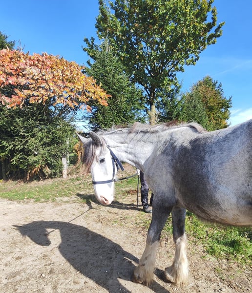 For sale: stunning Shire mare – a true highlight for horse enthusiasts! This impressive grey mare was born in 2024 and captivates with her majestic appearance. She combines strength and elegance and is ideally suited for leisure riding. Whether for walks or simply enjoying the company of a noble horse – this Shire mare will surely delight you. If interested or for further questions, please feel free to contact me. Viewing by appointment is possible.