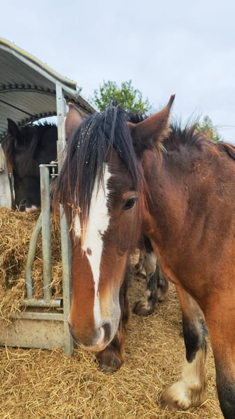 Thank you for your interest in our Shire Horse mare Ashanti. Ashanti is a particularly charming mare for sale, distinguished by her beautiful coloring and her sweet character. Shire Horse mare Ashanti was born in the summer of 2024 and is a curious and people-oriented young Shire horse lady. She comes from our own breeding and has been in our care from the very first moment. Both parent animals also impress with their balanced and loving character. Ashanti is growing up with her foal friends in a mixed herd on our spacious pastures. We wish for her a new home with plenty of horse companionship and playmates. In the group, she is confident and sociable. She is very affectionate towards humans, uncomplicated, and curious. She is halter-trained and knows all the things a weanling should know. She currently finds hoof care a bit annoying, but we are intensively working with her on this. Of course, Ashanti is chipped, vaccinated, regularly dewormed, and her hooves are maintained. Both parent animals are registered breeding animals of the English Shire Horse Society. Therefore, it is fundamentally conceivable for Ashanti to be used as a breeding mare in a few years. If you are looking for an exceptionally beautiful Shire Horse with a gentle and people-oriented character, which you would like to lovingly accompany as a partner in your life, please feel free to contact us. Our animals are only placed in the best hands and an age-appropriate home, so it is important to us to take enough time for interested parties. It is also important to us that the horse has a say in the decision, as the chemistry must also be right for our animals. We would be happy to arrange a non-binding meeting with Ashanti as a "Shire Horse Day or Weekend" at our farm, so that a mutual "getting to know each other" can take place in a calm and stress-free manner. Ashanti lives near Bad Füssing, and we will gladly send the exact address upon scheduling an appointment. There are overnight accommodations with great food within walking distance of our farm. Additionally, there are several beautiful spas and swimming lakes in the vicinity, making a small vacation in our area definitely worthwhile. "Non-riders" are also very warmly welcomed here. We also offer guided rides and hikes with our gentle giants in beautiful nature. Less experienced riders are welcome to join us; in this case, the horse will be led from the ground. Gift vouchers for this are also available and have already provided many lovely (birthday) surprises. Further impressions of our horses can also be found on our WhatsApp channel. If you are interested, we would be happy to send you the link. We look forward to your message.