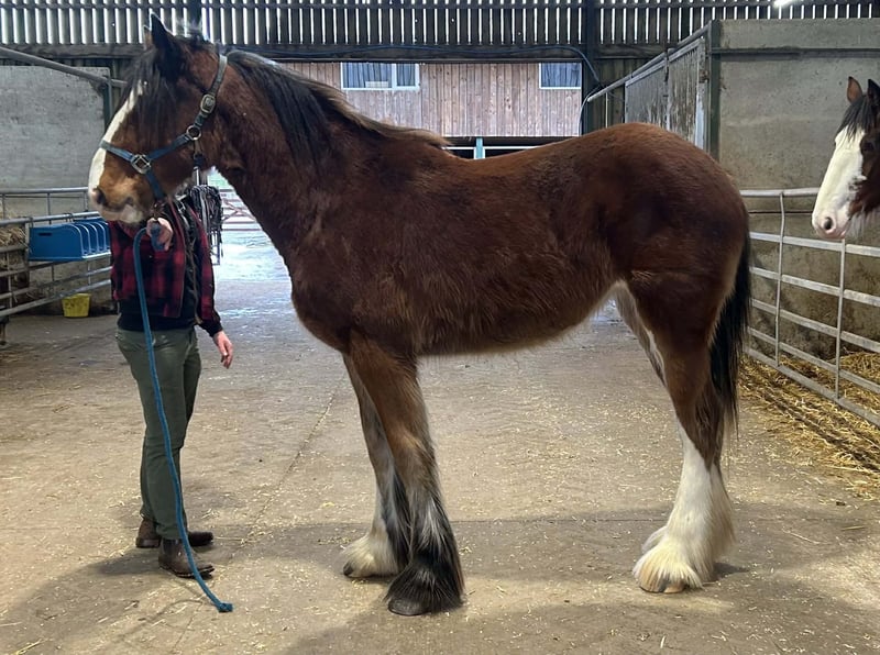 This big two year old filly is very well bred being out of a UK champion mare and a grey stallion. www.shiresandclydesdales.com 0044 1606 883869 UK and worldwide