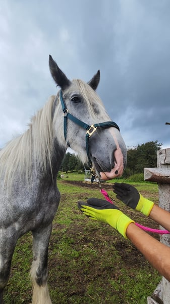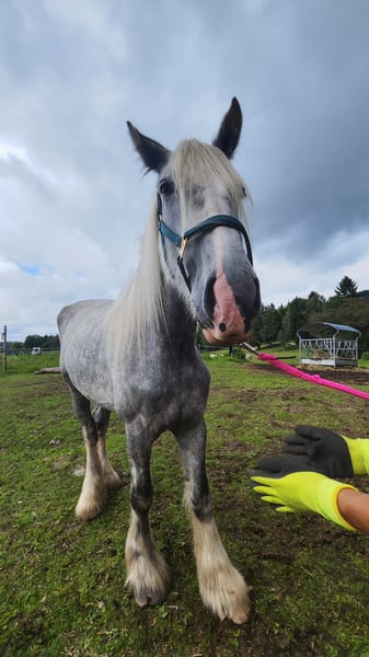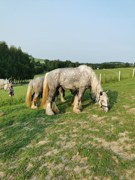 Beautiful Shire Horse Mare for Sale For sale is an impressive Shire Horse mare, born in 2021. This elegant grey mare stands approximately 180 cm tall and is known for her friendly, calm demeanor. She is well-suited for leisure riding and is suitable for both experienced riders and beginners. Features: - Breed: Shire Horse - Gender: Mare - Year of Birth: 2021 - Color: Grey (dappled) - Height: approx. 180 cm - Intended use: Leisure The mare is healthy, regularly vaccinated, and well cared for. She has a balanced temperament and is easy to handle. An ideal choice for anyone seeking a reliable and majestic leisure horse. Please feel free to contact me for more information or to arrange a viewing and trial ride.
