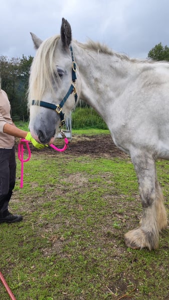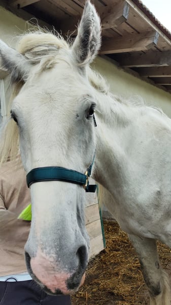 Zum Verkauf steht eine mächtige Shire Horse Stute, geboren im Jahr 2021. Diese Schimmelstute vereint Kraft, Dursetzung und Gelassenheit. Und wenn sie nicht will , dann will sie nicht !! Das geht natürlich mit ihrem Gewicht und ihrer Größe ganz leicht. Einsatzgebiet: Freizeit Preis: 5.900 € statt 8.800 € Diese Stute hat definitiv ihren eigenen Kopf. Und sie bestimmt, ob sie dich mag oder nicht. Sie stand letztes Jahr bei einem Bauern im Offenstall, der sie leider viel zu wenig gefüttert hat. Als wir sie zu uns holten, haben wir über ein halbes Jahr gebraucht um sie wieder aufzufüttern mit allen möglichem Zusatzfutter. Sie hat sich dadurch einen etwas eigenen Gang im Schritt zugetan. Aber ich denke mit weiter guter Verpflegung und auch Training in der Bewegung, ist das wieder hinzubekommen. Sie kennt den Menschen, aber geht nur zu denjenigen hin, den sie auch mag. Ansonsten ist es immer ein lustiges Spiel zu versuchen, sie einzufangen. Denn sie ist trotz ihrer Größe und ihres Gewichts relativ schnell und wendig. Diese außergewöhnliche Stute, hat definitiv Charakter und lässt sich von niemandem um den Finger wickeln, außer du hast ihr Herz gewonnen. Sie ist roh, und wie gesagt mit viel Übung und weiter füttern wird es vielleicht möglich sein, sie eines Tages ( jedoch nicht vor 6 Jahren) , je nachdem wie es ihr geht , mit einem langsamen Beritt anzufangen. Sie wird nur in absolut zuverlässige Hände abgegeben. Und seine Menschen den sie sich aussucht. Also wenn der Funke nicht überspringt, dann ist es nicht das richtige Pferd für dich. Also komm vorbei und schau ob es passt. Auch sie wünscht sich so sehr dass der richtige Mensch kommt.