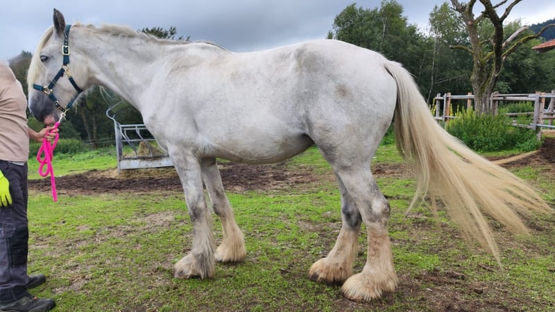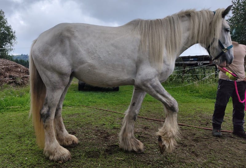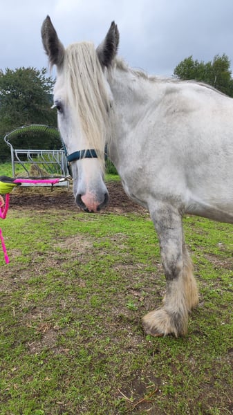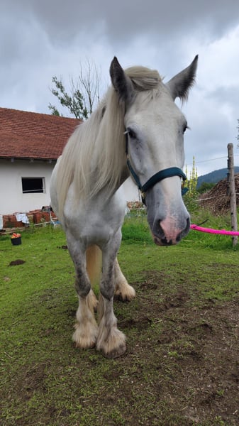 For sale is an impressive and elegant Shire Horse mare, born in 2021. This charming grey mare combines strength, calmness, and serenity, making her perfect for anyone seeking a friendly, reliable, and loyal horse for leisure and recreation. 🐴 Features: Breed: Shire Horse Gender: Mare Year of Birth: 2021 Color: Grey Intended Use: Leisure Price: €5,900 (reduced from €8,800) – for the right person, €4,900 This mare impresses with her gentle nature, balanced demeanor, and striking appearance. She is attentive, people-oriented, and brings a lot of calmness to everyday life – ideal for relaxed rides, walks, or simply spending quality time on the ground. Due to an unusual movement pattern in her walk, which does not occur in trot or canter and currently causes no restrictions, she is offered at a significantly reduced price. With proper handling and care, she can still become a wonderful leisure horse and loyal companion. She is well-maintained, well-behaved, curious, and friendly towards people. She is familiar with the vet, farrier, and trailer loading, and handles everything patiently and with trust. This exceptional mare is the perfect horse for someone looking not just for a riding partner, but for a true companion – a horse with character, serenity, and presence that inspires. 📍 Viewing and trial riding are available by appointment at any time. If interested or for further information and pictures, please contact us.