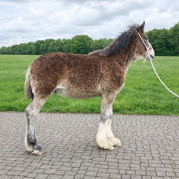 For sale is Wieswood Aragorn, born in April 2025. Not only is he a true gem in terms of character, but he is also very promising for breeding purposes. S. lineage. Estimated final height: over 190 cm. He will receive full and recognized SHS registration papers. Vaccinated and dewormed. Images 1-3: Current photos Image 4: Aragorn at 5 days old Image 5: Sire, Middle Meadow Morgan Image 6: Dam, Berrybrooks Duchess, 5 years old, over 190 cm 2024 Ostfriesland State Breeding Show, Champion Mare Class 5-year-olds Image 7: Sire’s sire, Cae Mawr Aristocrat Image 8: Dam’s dam, Middle Meadow Crystal Images 9-10: Full sister of the dam, Tide’s Mother of Dragons, 4 years old 2023 Ostfriesland State Breeding Show Champion Mare 2-year-olds Best Shire Horse bred in Germany 2023 2024 Ostfriesland State Breeding Show Champion Mare 3-year-olds Champion Mare of all classes 2024 Best Shire Horse bred in Germany 2024 2025 Federal Breeding Show Wickrath Champion Mare 4-year-olds