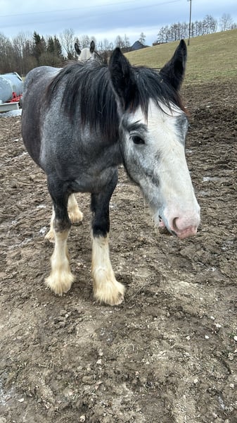 For Sale: Shire Horse Stallion – Dreamy Leisure Horse We are offering an impressive Shire Horse stallion, born in 2024. This magnificent animal captivates with its elegant appearance and calm, friendly demeanor. The grey coat shines beautifully, and his impressive size makes him a true eye-catcher. Standing at 180 cm (approximately 16.1 hh), he is an ideal leisure horse. Whether for hacking, trail riding, or relaxed outings in the countryside, this horse is the perfect companion for those seeking a reliable and characterful leisure horse. If you are interested or require further information, please feel free to contact me. Viewing and test riding are available by appointment.