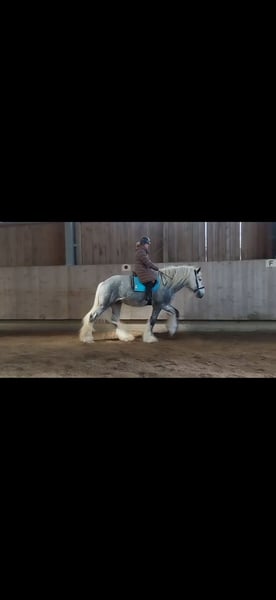 Unique Opportunity: Our stunningly beautiful, well-mannered, and lifetime-approved breeding stallion Primus, registered with the English Shire Horse Society, is seeking a new home. Currently, he stands at 1.85 meters and is expected to grow further. He was raised in an open stable environment with other horses (stallions and geldings) of varying ages until the start of his training. In 2024, Primus was approved for the second time as a breeding stallion, securing his lifetime status. He impressed especially with his appearance—embodying the "sporty type" of Shire Horse, making him well-suited as a riding horse. He is also certainly conceivable for work in harness. Primus is well-behaved and good-natured for a stallion, but experience with stallions is absolutely necessary, even for a gentle one like him. As a riding horse, he is still at the beginning of his training due to his age. With proper encouragement, there is definitely potential for development. He is ridden in all three gaits and shows motivation and willingness to move. Currently, Primus is barefoot and manages well. Traveling by trailer is also not an issue. We only place our animals in the best hands and age-appropriate homes, which is why we take ample time for potential buyers. It is also important to us that the horse has a say in the decision, as the chemistry must be right for our animals as well. We would be delighted to arrange an informal meeting with Primus as a "Shire Horse Day or Weekend," allowing for a relaxed and stress-free introduction. Primus resides near Bad Füssing. Accommodation with excellent dining options is within walking distance of our farm. Several beautiful thermal spas are also nearby, making a short vacation in our area worthwhile. Non-riders are also warmly welcome. We also offer guided rides and hikes with our gentle giants in beautiful nature. Less experienced riders are welcome to join, and in such cases, the horse will be led from the ground. Gift vouchers for these activities are available and have made for delightful (birthday) surprises. Further impressions of our horses can be found on our WhatsApp channel. If interested, we are happy to send the link. We look forward to your message.