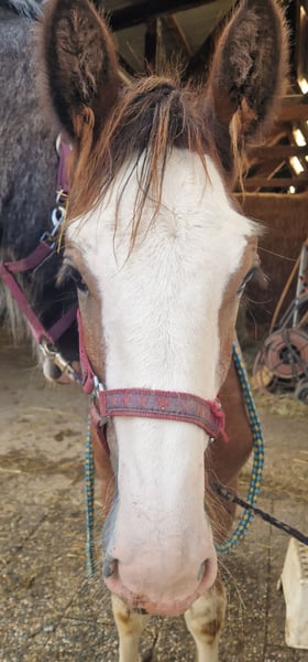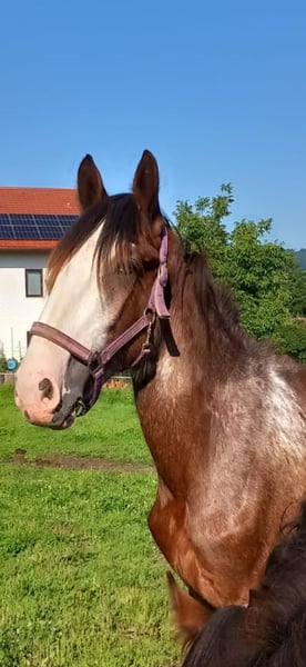 Bedankt voor uw interesse in onze Shire Horse ruin Hidalgo. Hidalgo is geboren in mei 2023 en is een echte "knuffelbeer". Aangezien beide ouders een goedmoedig en ontspannen karakter hebben, belooft hij ook een mooie en ongecompliceerde vertegenwoordiger van zijn ras te worden - in een speciale kleur. Hidalgo bewijst nu al ongecompliceerd en zachtaardig te zijn. Beide ouders zijn beschikbaar om kennis te maken. Zowel de 1,94 meter grote papa Duke als mama Olivia (hoogte ca. 1,80 meter) zijn in ons bezit. Hidalgo is opgegroeid in een gemengde kudde met veel speelkameraadjes en leeft momenteel met andere shires van verschillende leeftijden in een open stal. s Avonds gaan ze samen in de grote groep naar de uitgestrekte weiden. Tot nu toe is hij vriendelijk en ongecompliceerd tegen alle andere paarden. Hij is zeer mensgericht en lief in de omgang en geniet vooral van veel aaien en aandacht. Hidalgo gedraagt zich goed bij de hoefsmid en dierenarts, is makkelijk te leiden, aan te koppelen en te verzorgen en heeft zijn eerste trailerritten al feilloos onder de knie. Hij is bekend met tractoren, honden en allerlei andere kleine en grote dieren uit zijn dagelijkse leven op de boerderij. Natuurlijk is Hidalgo volledig ingeënt en krijgt hij alle noodzakelijke vaccinaties en ontwormingskuren om ervoor te zorgen dat hij blijft uitgroeien tot een gezond en levendig Shire Horse. Als je op zoek bent naar een Shire Horse met een zachtaardig en mensgericht karakter, die hij liefdevol zal begeleiden in zijn leven als partner aan zijn zijde, neem dan contact met ons op. Onze dieren gaan alleen naar de beste handen en naar een thuis passend bij hun leeftijd, dus het is voor ons belangrijk om voldoende tijd te nemen voor geïnteresseerden. Het is voor ons ook heel belangrijk dat het paard inspraak heeft in de beslissing, want de chemie moet ook voor onze dieren kloppen. We organiseren graag een kennismaking met Hidalgo in de vorm van een "Shire Horse Day" op onze boerderij, zodat we elkaar in alle rust en zonder stress kunnen leren kennen. Hidalgo woont in de buurt van Bad Füssing. Accommodatie is beschikbaar op loopafstand van onze boerderij. Als je geïnteresseerd bent, bieden we ook begeleide ritten op onze vriendelijke reuzen in een prachtige natuurlijke omgeving. We hebben ook een goed netwerk van transportbedrijven. Als je vervoer moet regelen, helpen we je graag met betrouwbare contacten. We horen graag van je voor Hidalgo.