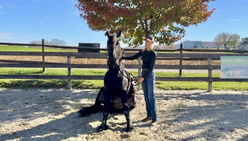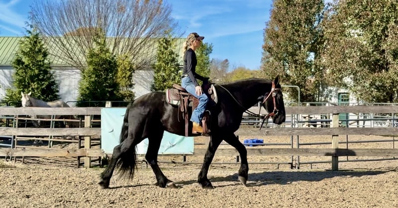 🎲𝓽𝓱𝓮 𝐑𝐈𝐃𝐄𝐑'𝐒 𝓒𝓱𝓸𝓲𝓬𝓮🎲 Happening now thru MONDAY | NOVEMBER 17th - Available EXCLUSIVELY on HorseBid's website! For more details and to register visit: www.Horsebid.com CONSIGNOR CONTACT: CM Farms 717-875-2061 LOCATION: Gap, PA BREED: Shire/Friesian/QHx REGISTERED: No REGISTERED NAME: Montgomery COLOR: Black HEIGHT: 16.2 AGE: 4 GENDER: Gelding Meet ✨Montgomery✨ a four year-old, 16.2 hand, Shire/Friesian/QH cross gelding. This well put together man has the sweetest temperament and has quickly made himself a barn favorite! Monty is also interchangeably known as Whiskers and Mustache around our barn. No, seriously- he probably has a better mustache than most of the men in your life…😂 -And while the mustache definitely makes him stand out, his overall sweet demeanor, safe mind, and talent under saddle and harness is what truly makes him stand out. He is wise beyond his years and was simply born quiet. He rides both Western and English, and drives both single and double. This boy even knows some tricks; he will lay down and sit like a dog on command! Monty has been started slowly and correctly under saddle. Exposed to a variety of different environments and disciplines, without anything being drilled or overdone. He is smart, athletic, a nice mover, and he can continue to go any direction and succeed. When people talk about wanting the perfect “in-between” draft cross that can still be athletic while having substance- this guy is what they’re describing. He’s sturdy, sure footed, a floaty mover, and a comfortable ride! He’s been on many trail rides to ensure a good foundation to his education. We would argue that he is already quite the trail master! He just tackled a hunter pace last weekend, and we couldn’t have asked him to do a better job. You can put him anywhere in the group and he’ll happily go along on a loose rein. He is very courageous and will lead even better than some of the older horses! He has a calm, quiet personality, and has proven to be incredibly brave. Monty has flown through our desensitization program like it was a breeze. He doesn’t mind the tarp, flag, smoke, equipment, traffic, dogs (and other various animals)- and he’s even walked through fire without batting an eye. You can ride him right to town without having a worry in the world. He’s even gone through the Chipotle drive-thru to pick up lunch! Monty is quite the guy, and once he gets to know you, he will be your best friend. He’s the type of horse that will bond with you, and once you have his trust, he will do anything for you! All it takes to win Monty over is a handful of treats and a soft gentle touch. He is a sensitive soul that is a once in a lifetime horse. In the ring, Monty has a nice walk trot and canter both directions. He’s responsive, forward thinking and a quick learner. You never have to ask him twice. His trot is adjustable. He moves off of leg, and he’s just starting to learn going on the bit and doing more collection work. His transitions are coming along incredibly well, and he has the best brakes with just a “whoa” or a sit back. He neck reins and direct reins, and once you get done riding and hop off of him, he will follow you around like a puppy- no lead rope needed! This superstar has been lightly started over jumps, both in the ring and cross country. He even did some coops on the pace! He is so naturally talented with his form, technique, and spatial awareness. He has the cutest knees over jumps (seriously look at the pictures) and endless scope! He doesn’t get rushy or hot. You can jump around, and then come back down and walk on a loose rein. If someone continues him in this direction, the options are endless! In the barn, Monty is always respectful and easy to handle. He stands on the cross ties or straight tie and will stand as still as a statue as long as you want him to. He’s quiet to both groom and tack up, and seems to love the attention. He’s behaved in his stall and for the vet and farrier. He loads right into the trailer and turns out in a mixed herd. We all adore our mustache around here--and we want the best home for him. If it weren’t for a full barn and an already large collection of personal horses, Caleb has sworn he’d be keeping him for himself! If you’re looking for a young prospect with zero vices, a sound mind, and the ability to go any direction do not pass up on this special gelding. UTD on shots farrier dentist and coggins- PPEs welcome