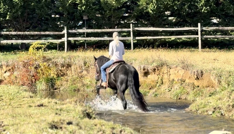 🎲 **DER RIDE-ER-WAHL** 🎲 Jetzt bis MONTAG, 17. NOVEMBER – exklusiv auf der Website von HorseBid verfügbar! Für weitere Details und zur Anmeldung besuchen Sie bitte: www.Horsebid.com VERKAUFERKONTAKT: CM Farms 717-875-2061 STANDORT: Gap, PA RASSE: Shire/Friesian/QH-Mix ZULASSUNG: Nein ZULASSUNGSNAME: Montgomery FARBE: Schwarz GRÖSSE: 16,2 hh ALTER: 4 Jahre Geschlecht: Wallach Lernen Sie ✨Montgomery✨ kennen, einen vierjährigen, 16,2 hh großen Shire/Friesian/QH-Mix-Wallach. Dieser gut gebauter Kerl hat das liebenswerteste Temperament und hat sich schnell zum Liebling in der Herde entwickelt! Monty ist auch unter den Namen Whiskers und Mustache bekannt – und ja, er hat wahrscheinlich einen besseren Schnurrbart als die meisten Männer in Ihrem Leben… 😂 – Und obwohl sein Schnurrbart ihn definitiv hervorhebt, sind es sein freundliches Wesen, sein sichere Geist und sein Talent unter Sattel und Kutsche, die ihn wirklich auszeichnen. Er ist weise über sein Alter hinaus und wurde von Natur aus ruhig geboren. Er reitet sowohl Western als auch Englisch und fährt sowohl einzeln als auch zu zweit. Dieser Kerl kennt sogar einige Tricks: Er legt sich auf Kommando hin und setzt sich wie ein Hund! Monty wurde langsam und korrekt unter Sattel eingearbeitet. Er wurde verschiedenen Umgebungen und Disziplinen ausgesetzt, ohne dass etwas übertrieben oder einstudiert wurde. Er ist intelligent, athletisch, ein schöner Bewegungsmensch und kann in jede Richtung weiterentwickelt werden. Wenn man von einem perfekten „Zwischending“ aus Draft- und Cross-Horse spricht, das noch athletisch ist und Substanz hat, ist er genau das, was gemeint ist. Er ist robust, sicher auf den Beinen, ein schwebender Bewegungsmensch und bietet ein angenehmes Reitgefühl! Er hat bereits viele Geländeritte gemacht, um eine solide Grundlage für seine Ausbildung zu schaffen. Wir würden sagen, dass er bereits ein echter Trail-Meister ist! Letztes Wochenende hat er sogar an einem Hunter Pace teilgenommen, und wir hätten ihn kein bisschen besser machen können. Man kann ihn überall in der Gruppe reiten, und er geht gerne mit lockerem Zügel mit. Er ist sehr mutig und führt sogar noch besser als einige ältere Pferde! Mit seiner ruhigen, gelassenen Persönlichkeit hat er sich als unglaublich mutig erwiesen. Monty hat unsere Desensibilisierungs-Programme wie im Flug gemeistert. Er hat keine Angst vor Planen, Flaggen, Rauch, Gerätschaften, Verkehr, Hunden (und anderen Tieren) – und ist sogar durch Feuer gegangen, ohne mit der Wimper zu zucken. Sie können ihn problemlos in die Stadt reiten, ohne sich Sorgen zu machen. Er hat sogar beim Chipotle Drive-Thru sein Mittagessen abgeholt! Monty ist ein wahrer Kerl, und sobald er Sie kennt, wird er Ihr bester Freund. Er ist der Typ Pferd, das eine Bindung zu Ihnen aufbaut, und wenn Sie ihm vertrauen, tut er alles für Sie! Alles, was es braucht, um Monty zu begeistern, sind ein paar Leckerlis und eine sanfte, liebevolle Berührung. Er ist eine sensible Seele und ein Pferd fürs Leben. Im Viereck zeigt Monty einen schönen Schritt, Trab und Galopp in beide Richtungen. Er ist aufmerksam, motiviert und lernt schnell. Man muss ihn nie zweimal bitten. Sein Trab ist fein einstellbar. Er reagiert auf die Schenkel, und er beginnt gerade, das Annehmen des Zügels und mehr Versammlung zu lernen. Seine Übergänge sind bereits sehr gut, und er hat die besten Bremsen – ein „Whoa“ oder ein Zurücklehnen genügen. Er neck reins und direkte Zügel, und wenn Sie vom Reiten absteigen, folgt er Ihnen wie ein Welpe – ganz ohne Führstrick! Dieser Superstar wurde leicht im Springen ausgebildet, sowohl im Viereck als auch im Cross Country. Er hat sogar einige Coops beim Pace überwunden! Er ist mit seiner Technik, seinem Formgefühl und seinem räumlichen Bewusstsein äußerst talentiert. Seine Knie über den Sprüngen sind einfach zu süß (schauen Sie sich die Bilder an) und er hat unendliches Springvermögen! Er wird nicht nervös oder heiß. Sie können springen, und anschließend wieder entspannt auf dem Zügel gehen. Wenn man ihn in diese Richtung weiter fördert, sind die Möglichkeiten endlos! Im Stall ist Monty stets respektvoll und leicht zu handhaben. Er steht ruhig an den Kreuzstricken oder an der geraden Anbindestelle und bleibt so still wie eine Statue, solange man es möchte. Er ist ruhig beim Putzen und Satteln und liebt offensichtlich die Aufmerksamkeit. Er verhält sich im Stall, beim Tierarzt und beim Hufschmied vorbildlich. Er lädt problemlos in den Anhänger und verträgt sich mit einer gemischten Herde. Wir alle lieben unseren Schnurrbart hier – und wünschen ihm das beste Zuhause. Wäre der Stall nicht voll und unsere Sammlung an eigenen Pferden schon so groß, Caleb würde schwören, ihn selbst zu behalten! Wenn Sie nach einem jungen Pferd ohne Macken, mit klarem Verstand und der Fähigkeit in jede Richtung zu gehen suchen, verpassen Sie nicht diesen besonderen Wallach. Aktuell geimpft, entwurmt, beim Hufschmied, Zahnarzt und Coggins-Test – Vorabuntersuchungen sind willkommen.