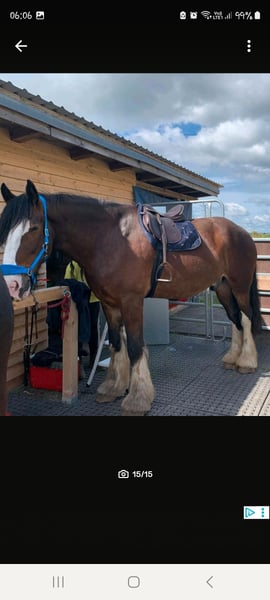Here is my 9-year-old Shire Horse gelding, Marlow, for sale. Registered Name: Emma's Marlow. Age: Born on April 11, 2016. 9 years old. Height: Approximately 16.2 hh. Ridden in all three gaits for leisure riding. Handles well in the arena, in the indoor riding hall, and in the field. Rides comfortably both in a group and alone in the terrain. A big cuddle bug who is always very calm, sensible, and easy to handle. Works on the longe and double longe and is familiar with ground work. Regularly vaccinated, dewormed, with biannual osteopathic check-ups, annual dental care, and routine saddle checks. Knows herds both consisting solely of geldings and mixed herds with mares and geldings. Good with the farrier, veterinarian, and trailer loading. Kept in an open stable system and only knows this type of housing. Sold with all accessories (saddle, girth, lunging equipment, bridle, halter, grooming tools, cooler, etc.). Only sold in an open stable system. No installment payments! Price is not negotiable! To prevent tourism riding, a trial ride fee of €50 is charged. This amount will be deducted from the purchase price.