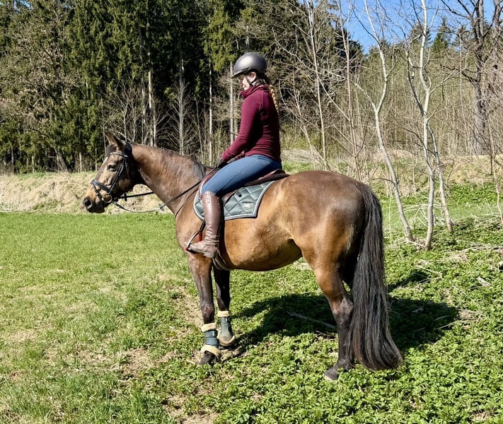 Kasio ist eine acht jährige hübsche Stute in der besonderem Farbe bukskin. Im Sommer schillert das Fell golden und bildet einen schönen Kontrast zum schwarzen Deckhaar. Das 158 cm große Pferd kennt Bodenarbeit genauso wie das reiten am Platz oder im Gelände. Im Umgang ist Kasio sehr ruhig und entspannt und auch beim reiten zählt die Stute eher zu dem Ruhigeren. Kasio läuft barhuf, ist geimpft, entwurmt und gesund! Weitere Infos und Videos gerne per WhatsApp oder telefonisch unter: 00436603632373 Standort: Pelmberg 15/ OÖ Besichtigung und Probereiten gerne nach Terminvereinbarung! Der Transport des Pferdes kann gerne übernommen werden
