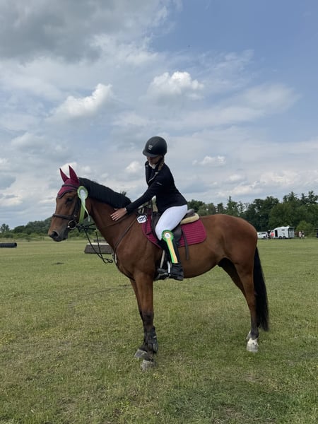 I am offering for sale a brown gelding of the Slovak Warmblood. His name is Lucas, he is 12 years old, height at the withers approx. 164cm. A horse suitable for sports for a skilled child or amateur. Jumped to 130, currently with a child 120. ✅ Regularly treated, vaccinated, dewormed, without horseshoes ✅ The horse is healthy, without bad habits ✅ Possibility to try on site Price: €15,000 Location: Šamorín 📞 Contact: Emma Roberta Vetráková | tel. number: +421 910 777 734 📸 I will send more photos or videos upon request.