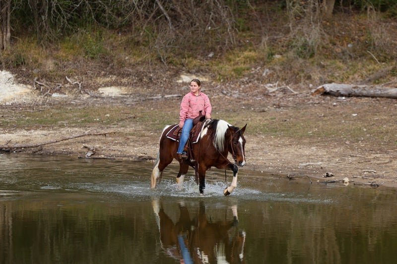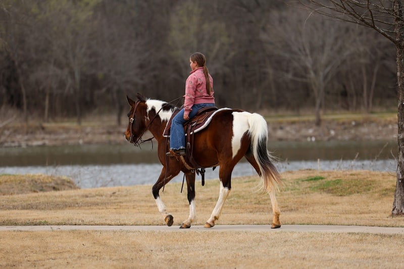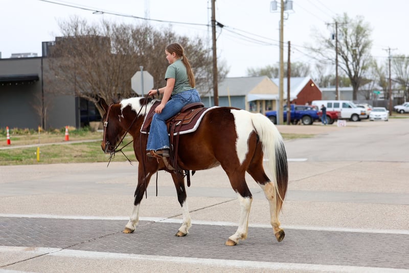 ℳ𝒶𝓇𝒸𝒽 ♦️𝐑𝐈𝐃𝐄𝐑'𝐒 𝐂𝐇𝐎𝐈𝐂𝐄♦️ Happening now thru MONDAY | MARCH 9th - Available EXCLUSIVELY on HorseBid's website! For more details and to register visit: www.Horsebid.com CONSIGNOR CONTACT: MM Ranch 469-318-1902 LOCATION: Forney, TX BREED: Spotted Saddle Bred REGISTERED: No REGISTERED NAME: Vespa COLOR: Paint HEIGHT: 15.2 AGE: 12 GENDER: Mare 🛵 Vespa (like a little cute smooth scooter) is a good honest all around trail horse!! She is the kind that is bombproof and safe for absolutely anyone to ride. She is kid tested and grandparents approved. She has been rode by ages 4 yrs old to 85 yrs old. She is a been there done that type. A true well seasoned horse with thousands of miles under her belt. She is the perfect size of 15 hands tall. Not too big not too small! And she is the perfect age of 12 yrs old. (Vet confirmed on age). 🛵Vespa is a spotted saddle bred horse (gaited horse). If you don’t know about the breed I encourage you to look them up. It’s not a prancy or hyper gait. Not quick. It’s a natural more laid back gentle gait. She will walk or kick her up to her gait. She will go both slow or fast in her gait as well. All the time on a loose rein. You don’t have to fight her or constantly pull her back. You just set the speed to your liking. She is super easy to get gaiting but as soon as you are done she will drop right back down into a walk. It’s kinda of liking putting your car on curse control. She will do the rest. She is a super smoooooth ride!!!! And oh so easy and fun. If you have back or hip issues and need a comfortable ride this is her. Vespa is trail riders dream horse. She is a true lady to be around on the ground. She absolutely loves the kids. She is a very well mannered girl. She stands tied at the trailer, stands for farrier, vet, and bathes well. She stalls well, and enjoys turn out time. She gets along with other horses well. She is a very easy keeper. 🛵 Vespa will cross whatever you come to water, bridges, deadfall, wildlife, and traffic. We have been through rocky terrain, had her around gunfire, tarps, city lights, and cattle, all of which she has handled very well. You cannot rattle her or stir her up. She is a seasoned pro. 🛵 Vespa has a true one hand neck rein, and is very light in the mouth. She backs up with ease. She rides out alone just fine. Not at all buddy sour or herd soured. Not at all hyper. I can’t stress that enough. Other gaited I have been around seem to want to go all the time. That is not her. She will gait when told to then walk the rest of the time. You wouldn’t even know she was gaited till you speed her up. Yes she will lope too. 🛵 We have used her to check our cattle. Yes surprisingly she likes working cattle and being around them. We have took her on many mountain rides through all types of terrain. She is a seasoned real deal trail horse. We have let the kids ride her through town. Absolutely nothing fazes this girl. Not at all spooky or watchy. No bad habits at all. Absolutely no buck or silliness when riding her. We never have to warm her up or tune her up before we take her on a ride. Even if we have went 3-6 month without riding her. We can catch her fresh out on the pasture and go. 🛵 Vespa is a super easy keeper. Requires no maintenance of any kind. She can go bare foot or put shoes on her. You can stall her or turn her out. Doesn’t matter to her. She is easy. PLUS she sells 100% sounds with no health issues. She did have a pre vet evaluation done included in the pictures. If you have anymore questions about her feel free to call. We would love to visit with you about her. We can help you arrange shipping anywhere. She is up to date on all vaccinations, worming, had her teeth checked, feet. She is ready to go to her new home. 🏠