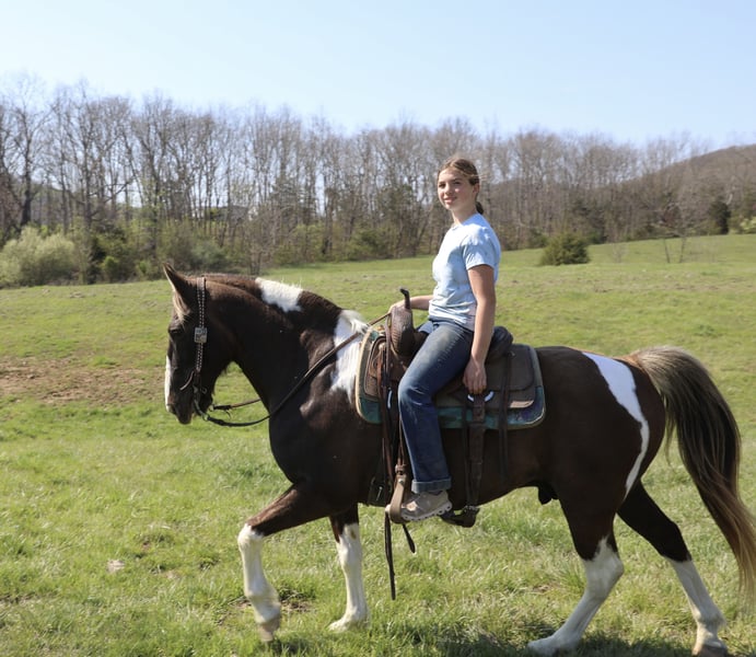 ⚜️𝐭𝐡𝐞 𝓔𝓵𝓲𝓽𝓮 𝐒𝐩𝐫𝐢𝐧𝐠 𝐂𝐥𝐚𝐬𝐬𝐢𝐜⚜️ Happening now thru MONDAY | APRIL 20th - Available EXCLUSIVELY on HorseBid's website! For more details and to register visit: www.Horsebid.com CONSIGNOR CONTACT: Js Quality Riding Horses 606-748-0066 LOCATION: Wallingford, KY BREED: Spotted saddle horse REGISTERED: No REGISTERED NAME: Smores COLOR: Chocolate and white HEIGHT: 15 AGE: 12 GENDER: Gelding We are proud to introduce “Smores” a 15 hand 12 years young spotted saddle gelding. Smores is the kind of horse you wanna go out and ride, whether it’s 70° and the sun is shining or -2° and snow falling. Smores has a good solid walk, a beer drinking gait, and even can lope like a quarter horse if asked. There’s not a hill to steep or a creek to deep, s’mores is ready to hit the trail and get you wherever your wanting to go safely and smoothly. Smores has a good smooth gait that will get you wherever your heart desires , in a safe, fashionable, and comfortable manner ! Wanna drop your reins, enjoy a cold one while hitting the trails? Smores is your guy ! Smores stands to be mounted, saddled, bridled, he stands good for the farrier and loads with ease. S’mores is a trail superstar, but he also is wonderful in the arena and will work the rail , circles, or whatever else you may want. Want to go to the obstacle courses ? Fun shows ? Smores got you covered ! Smores is built to last, he’s sturdy made like a stock horse, big boned and has good solid hooves to last a lifetime ! S’mores has a good neckrein to him, he stops on whoa, and will ride around like a quarter horse. Smores stays broke with time off, he will ride out alone or by himself and doesn’t care to lead the trail or follow behind. S’mores has been rode all over national forests and has experience in all terrains. If your wanting a good safe solid trail mount, or a fancy gelding to hit the arena on, look no further s’mores is ready for his next adventure!