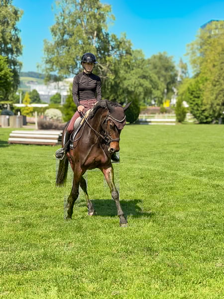 Zum Verkauf steht eine 11-jährige Stute, ideal für den ambitionierten Freizeitreiter, der gelegentlich noch kleinere Concours bestreiten möchte. Sie ist sehr gut ausgebildet in der Dressur sowie im Springen. Delaja wäre auch gut geignet als Lizenz Pferd. Sie hat die Dressurlizenz und die Springlizenz absolviert und es hat ihr stets Freude bereitet jemanden durch die Lizenz zu tragen. Aufgrund eines kleinen Befunds ist sie nicht mehr für den höheren Sport vorgesehen, für Freizeit, Training und kleinere Turniere jedoch bestens geeignet. Im Umgang wie auch unter dem Sattel ist sie absolut brav – ein echtes Verlasspferd und ein wertvoller Lehrmeister. Sie möchte ihrem Menschen immer gefallen, ist klar im Kopf und vermittelt viel Sicherheit. Zudem liebt sie es zu schmusen und im Mittelpunkt zu stehen, was sie auch im Alltag zu einer ganz besonderen Partnerin macht.