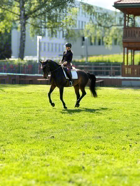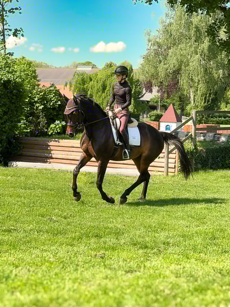 À vendre, une jument de 11 ans, idéale pour le cavalier de loisir ambitieux souhaitant participer occasionnellement à de petites compétitions. Elle est très bien dressée en dressage ainsi qu’en saut d’obstacles. Delaja conviendrait également comme cheval de reproduction. Elle a obtenu ses licences de dressage et de saut, et a toujours pris plaisir à accompagner son cavalier lors de ces démarches. En raison d’un léger problème de santé, elle n’est plus destinée à la compétition de haut niveau, mais elle est parfaitement adaptée pour la balade, l’entraînement et les petites épreuves. Au sol comme en selle, elle se montre absolument calme et fiable – une véritable monture de confiance et une excellente maîtresse d’apprentissage. Elle souhaite toujours faire plaisir à son humain, est lucide et transmet beaucoup de sécurité. De plus, elle adore les câlins et être au centre de l’attention, ce qui fait d’elle une partenaire très spéciale au quotidien.