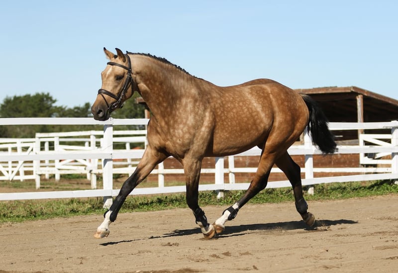 Ein seltenes Unikat…🦄 Unser Flaggschiff-Hengst Corteo W5 steht nun für ein neues Zuhause bereit. Eine Gelegenheit, die es so kein zweites Mal gibt. Corteo wäre ein großartiger Hunter, doch er besitzt auch die Sprungkraft und Einstellung, um im Springring zu glänzen. Sein Buckskin-Fell sorgt dafür, dass er niemals unbemerkt bleibt, und seine schöne Konformation, ausgeglichene Gänge sowie sein beeindruckender Kopf runden das Gesamtbild ab. Er ist mutig, unkompliziert und scheut vor nichts zurück. Sein Rhythmus zwischen den Sprüngen ist natürlich ruhig, ergänzt durch exzellente Technik und unbestreitbares Talent über den Sprung hinweg. Mit Cardento, For Pleasure und Bernstein in seinem Pedigree überrascht seine athletische Veranlagung nicht. Bereits hat er eine Handvoll beeindruckender Fohlen auf der Welt, die alle denselben scharfen Geist, Mut und natürliches Talent zeigen, die Corteo zu etwas Besonderem machen. Wenn Sie nach etwas wirklich Außergewöhnlichem gesucht haben, könnte jetzt Ihr Moment sein.
