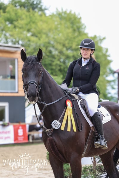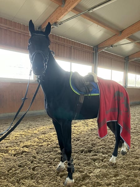 Enormous talent combined with a strong work ethic and excellent character define this 5-year-old gelding. Although he has only been lightly introduced to competition, he has already achieved placements up to SPF A**. A genuinely honest horse that brings a lot of joy in daily handling. Shoeing and loading are no problem for him; he is familiar with the lunging ring.