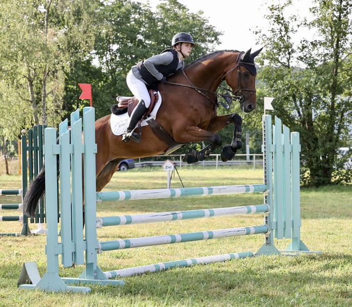 7-year-old Swiss gelding, approximately 16.1 hh, directly from the breeder! Placed up to 1.10 m Not suitable for beginners, but generally an uncomplicated sports partner who still needs to gain experience. Has the potential for higher-level competition, but also suitable as an amateur horse for smaller jumping courses. Please contact only via WhatsApp or by phone at 01737482545.