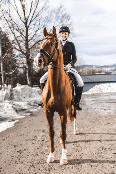 CL Apollo – modern dressage gelding with top sport potential CL Apollo is a well-bred, modern dressage gelding by Aros (Norwegian warmblood, Antobello x Leredo) out of Præstegaardens Asta (Painters Row – Aleksander). He presents as a light, athletic and functional type, with good mechanics and natural balance. He is well on track in his education for his age and shows a consistently positive attitude towards work. Apollo is rideable, willing and quick to understand new tasks, making him straightforward to develop further in a systematic training program. Under saddle, he gives a good feeling with a body that works correctly, combined with elasticity and natural self-carriage. He shows clear potential for progression within the sport. An interesting prospect for ambitious riders looking for a quality young horse with the right foundation for higher level development. Serious enquiries only.