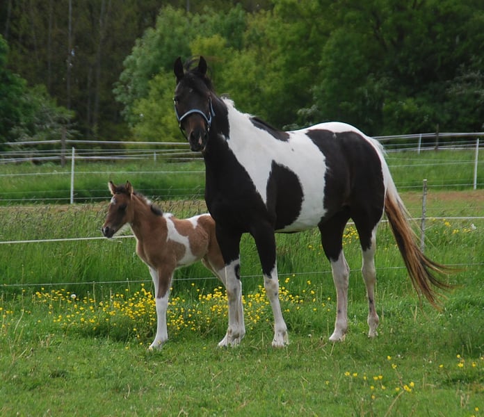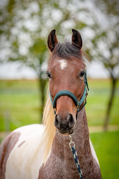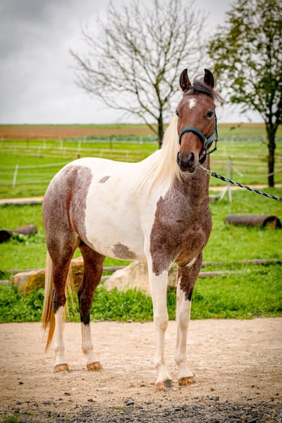 Angel ist 2022 bei uns geboren und wuchs artgerecht im Herdenverband auf. Sie war von Anfang an sehr dem Menschen zugetan, liebt kuscheln und gemeinsame Unternehmungen. Ihre Mutter ist Naturtölter und aus USA importiert. Unser Deckhengst Mississippi Mud ist der Vater, ein Tölt Spezialist für alle Fälle, ob Messe, Turnier oder Orientierungsritt in großer Gruppe. Ihren goldenen Charakter hat Angel von beiden Eltern geerbt. Sie befindet sich derzeit in der Grundausbildung, kennt Longe, Doppellonge, Handpferdereiten, Bodenarbeit, Trailhindernisse und wird in den Grundgangarten auf dem Reitplatz, auf der Ovalbahn und im Gelände geritten. Mit gut mittlerem Temperament macht sie jetzt schon viel Freude unter dem Sattel. Sie verfügt über sehr viel Tölt und bietet diesen schon immer wieder von sich aus unter dem Sattel an. In dieser Ausbildungsphase wurde er bisher von uns noch nicht gezielt abgefragt, aber es ist jetzt schon zu sehen, dass sie ein toller Tölter werden wird. Wir sehen ihren späteren Einsatzbereich hauptsächlich als Luxus Freizeitpferd, ein Partner fürs Gelände, Wanderritte, aber auch im IGV Sport / Gaited Working Equitation können wir sie uns gut vorstellen. Durch ihre guten Grundgangarten kann sie auch dressurlich geritten werden zusätzlich zum Gang. Ein guter Viergänger mit viel Tölt, dem viele Wege offen stehen. Auch für die Zucht wäre sie interessant. Sie ist bay roan tobiano, dh. alle ihre Fohlen werden entweder roan oder Schecke. Aufgrund des Ausbildungsstandes ist sie kein Anfängerpferd und benötigt noch weitere Ausbildung. Sie kann jetzt zu einem fairen Preis zum selbst nach eigenen Wünschen weiter ausbilden erworben werden oder auch noch für weiteren Beritt bei uns bleiben. Angel hat natürlich volles Papier und wird mit einer klinischen Ankaufsuntersuchung verkauft. Sie war nie krank oder verletzt, ist geimpft, regelmäßig entwurmt und mit Mineral versorgt. Die Zähne sind frisch gemacht. Wir wünschen uns für Angel einen Platz in artgerechter Gruppenhaltung bei ihrem Herzensmenschen. Platz vor Preis.