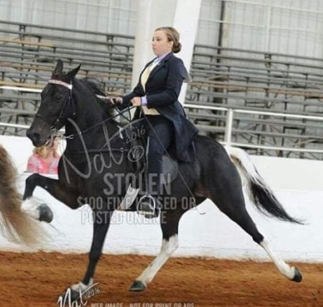Uma is a very sweet and unique little mare. Rare bloodlines (mother (shown under saddle in pictures) is a double wc out of Pied Piper, one of the best racking horses in the US, father well know RHM Risky Business). Uma combines the spectacular gaits of the racking horse with the balanced mind and of body of the RMH. Registered SSHA as a foal, but could also be certified for SHOBA. Put under saddle in 2024 but not ridden since due to personal circumstances. Stand for farrier, loads easily, knows a lot of ground work. She's used to being 24/7 outdoors, but wouldn't mind to be stabled at night. I'm looking for a home where she gets enough outdoor time with horse friends. Often chooses tölt/rack in pasture over trot. Because of this, and her lack of training, I don't consider her a beginner horse. Please contact me for further information.